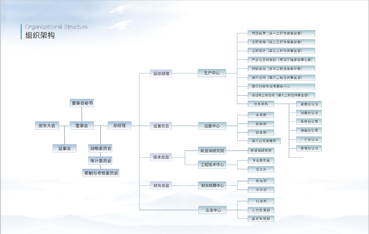 公司下设工程咨询事业部、招标代理事业部、工程造价咨询事业部、规划设计事业部等机构...
