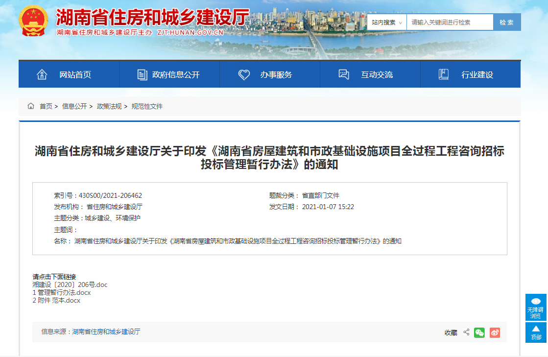 湖南省住建厅发文:房建和市政项目全过程工程咨询招标投标管理暂行办法,自2月1日起施行!