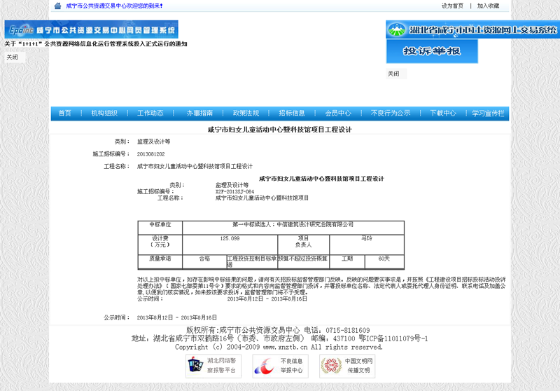 咸宁市妇女儿童活动中心暨科技馆项目工程设计中标通知