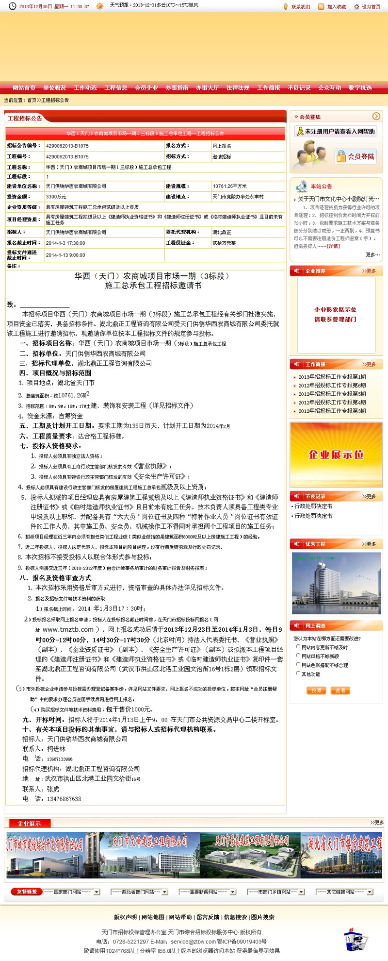华西(天门)农商城项目市场一期(三标段)施工总承包工程