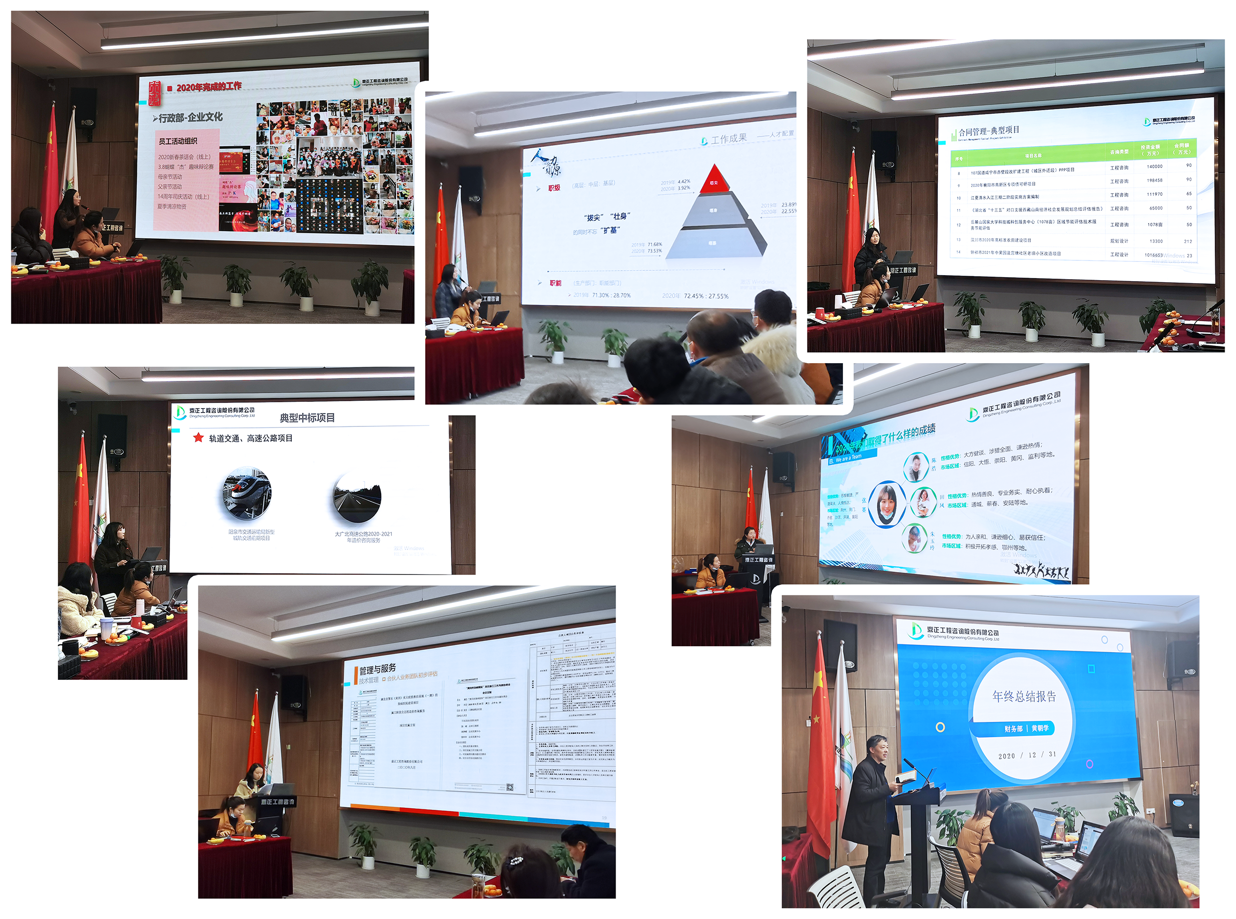 2021年1月5日,鼎正公司“2020年度工作总结会议”圆满召开。公司总部16位部门骨干结合本部门业务职能,对部门年度重点工作进行了全面系统的总结汇报,主要内容包括:2020年重点工作总结、存在的问题及解决措施、2021年重点工作规划目标及具体执行方案。