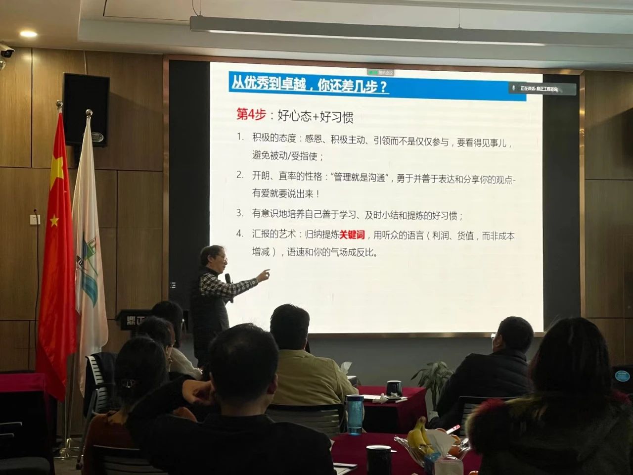 下午13:30,赵丰老师的《卓越造价咨询企业练就之路》专题授课在鼎正珞珈多功能厅正式开讲,此次授课采用线上线下相结合的方式同步开启,鼎正总部、各分公司以及驻扎在项目一线的同事同步参与学习。