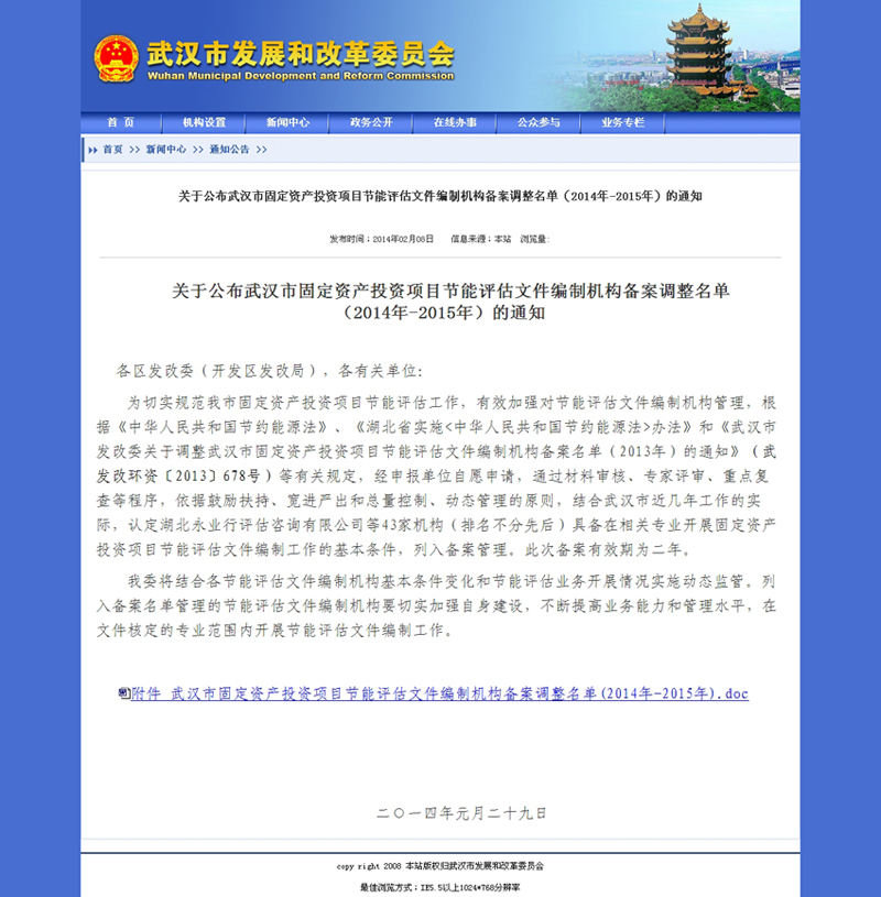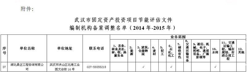我公司入选武汉市固定资产投资项目节能评估文件编制机构名单