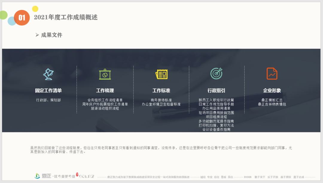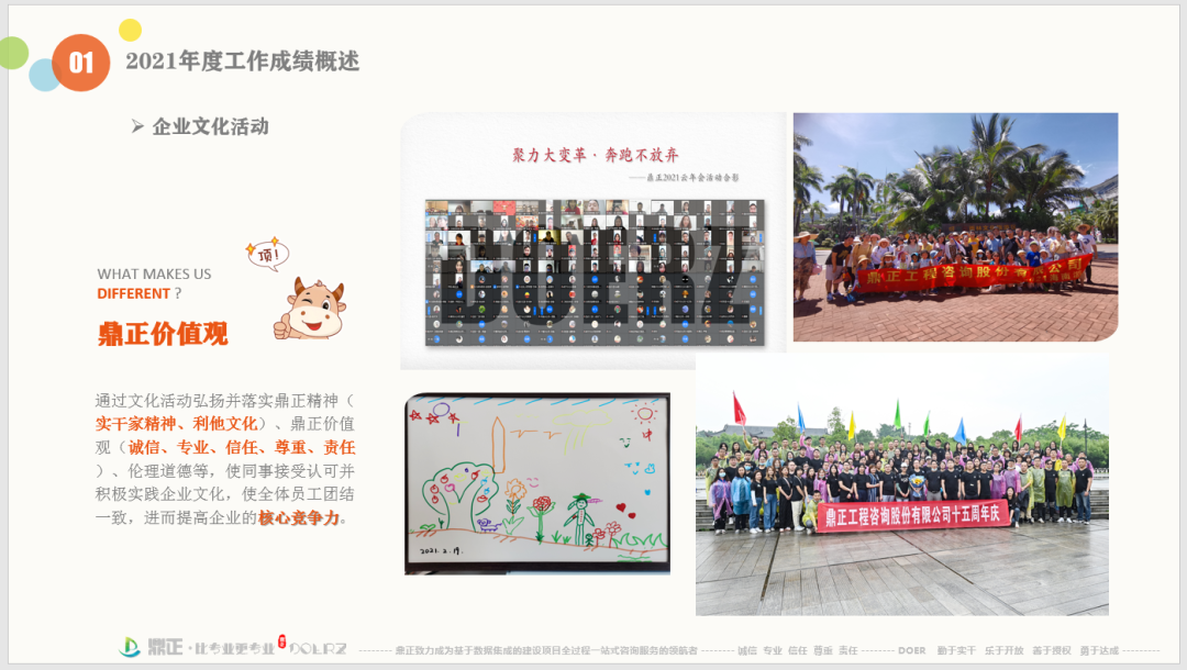 本次年终总结会议既是一次回顾过往的总结大会,也是一次展望未来、再创佳绩的动员大会。感谢全体鼎正人在2021年度的积极付出与努力,望大家继续加强自身学习,提高工作效率,端正工作态度,提升服务质量,全体同仁齐心协力乘势而上,凝聚力量共筑未来,相信明天会更好!