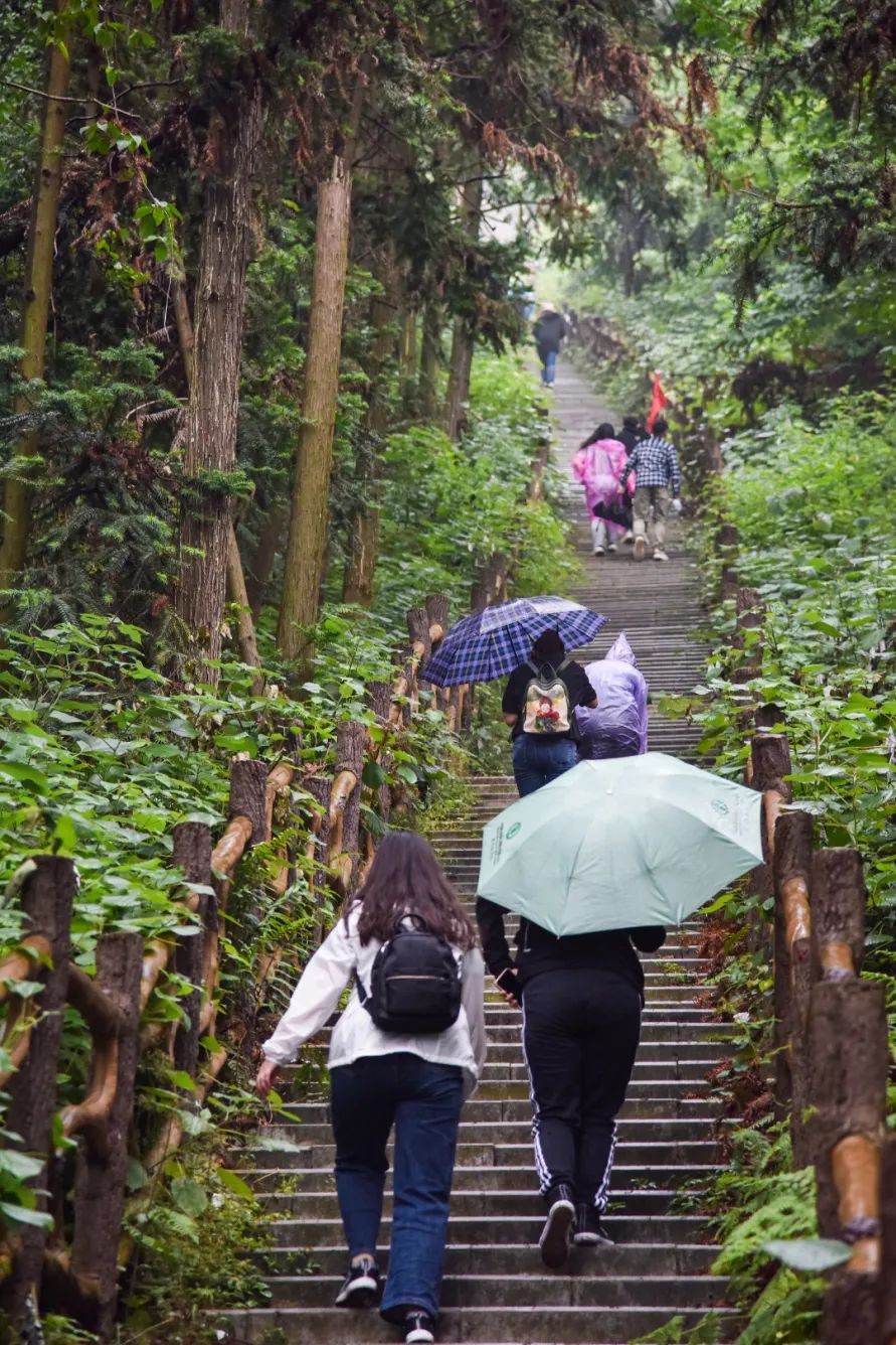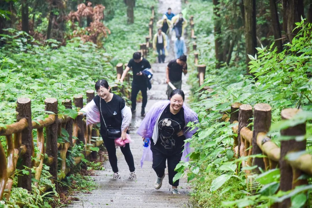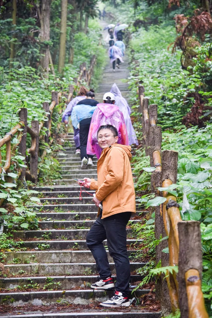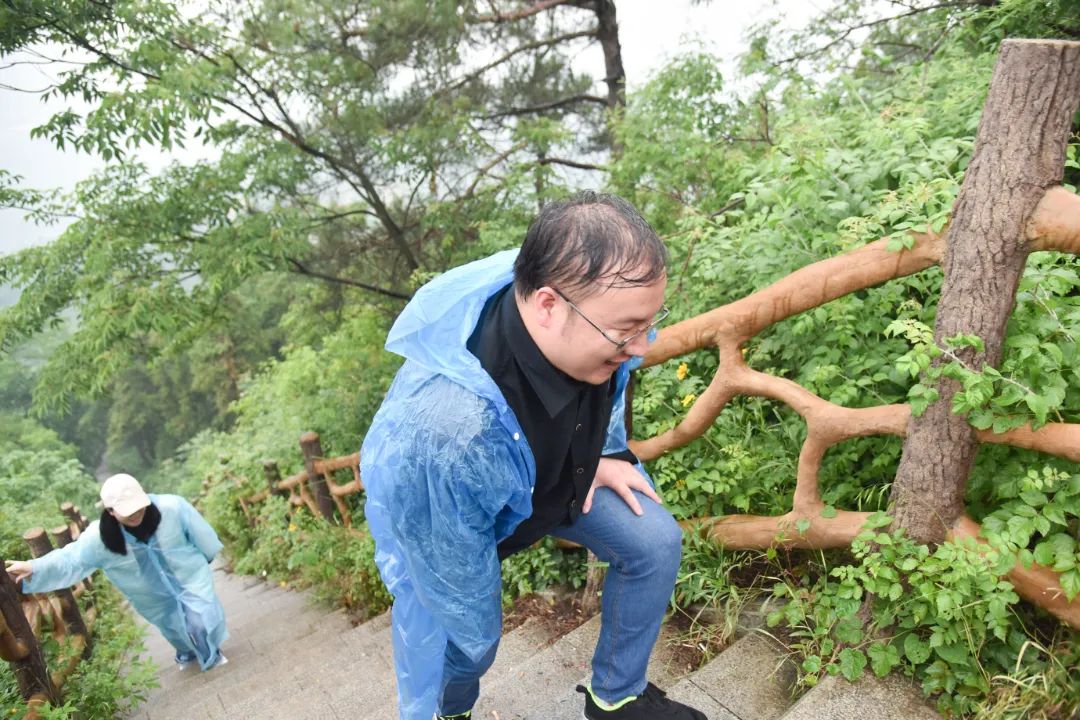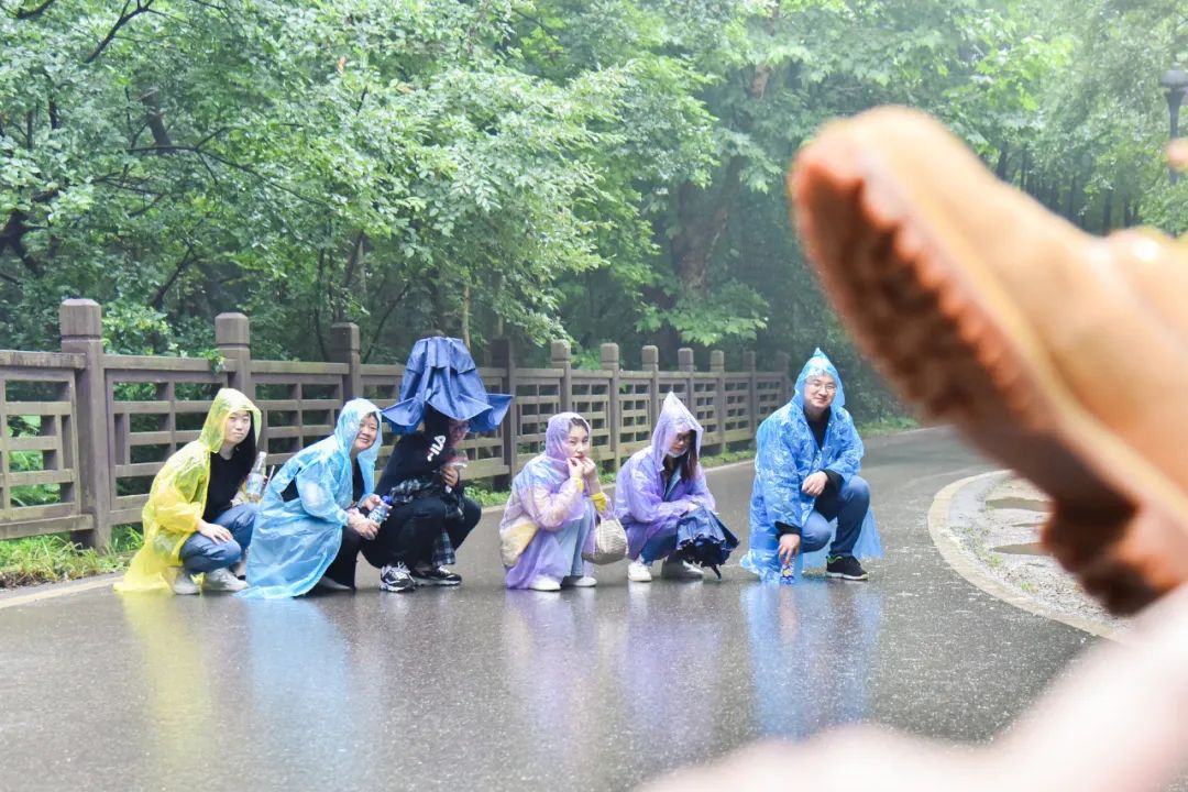 不一会儿的功夫,雨越下越大,一群舍不得下山的人还在努力拍照。