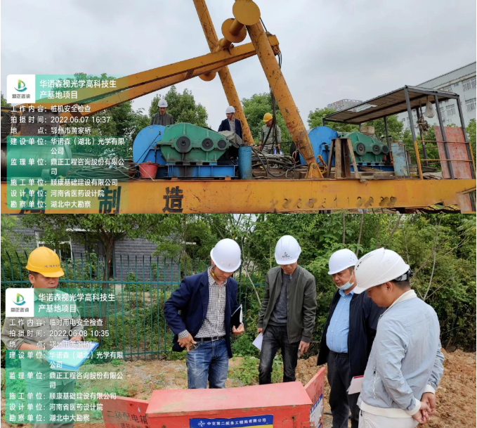 6月8日,华诺森视光学高科技生产基地项目总监理工程师杜胜与施工单位项目经理对施工现场、办公区和生活区在内的临时用电逐一检查。针对检查中发现的施工现场临时用电技术安全资料的完整性,电源线路中接地线设置的规范性以及生活区电源线接口安全等问题,采取面对面交流的形式,现场指出问题所在,并讲解安全用电规范,提高作业人员的安全意识。