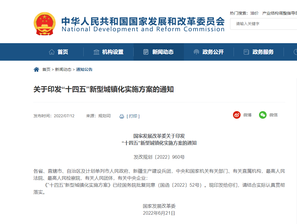 国家发展改革委关于印发“十四五”新型城镇化实施方案的通知