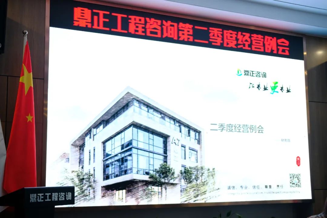 7月23日,鼎正2022年第二季度经营例会暨工程咨询新营销战略研讨会在鼎正第一办公空间珞珈会议室召开。王雁然董事长、毛迎霞总经理与各分公司负责人及总分公司各级管理干部等百余人通过线上与线下方式出席会议。