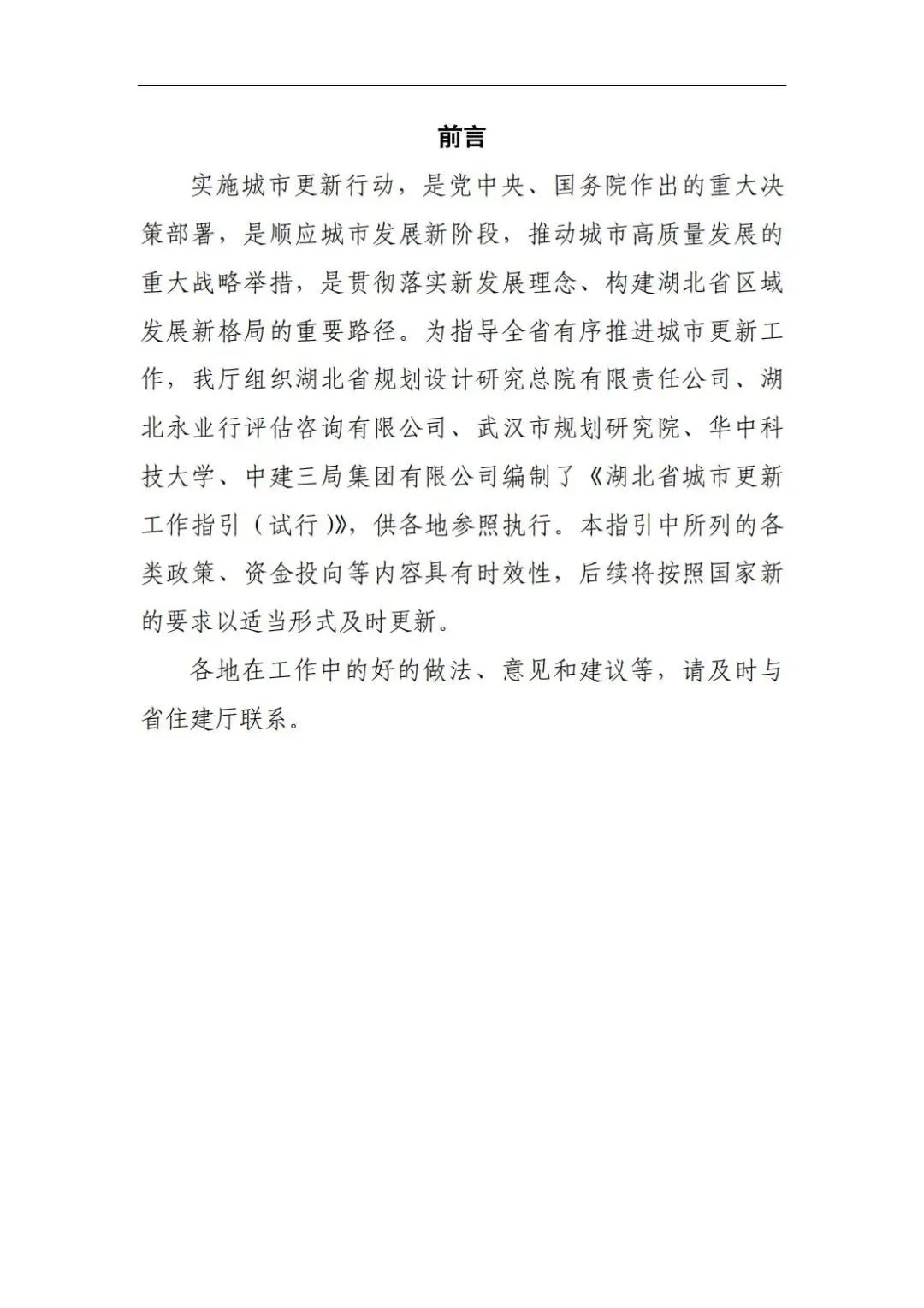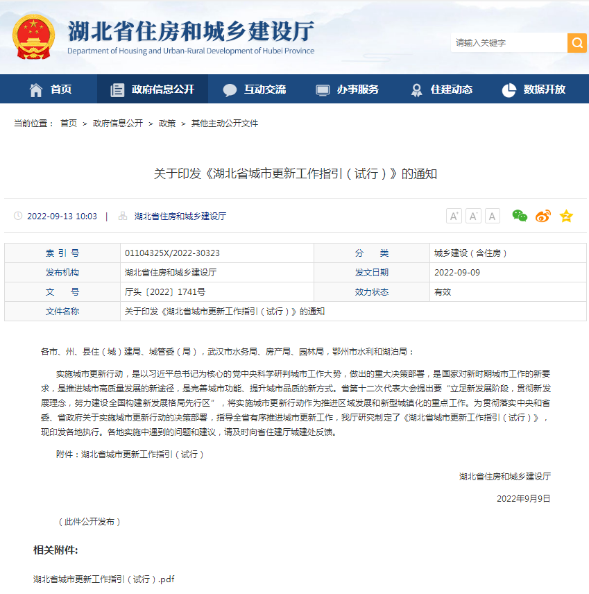 湖北省住建厅印发《湖北省城市更新工作指引(试行)》