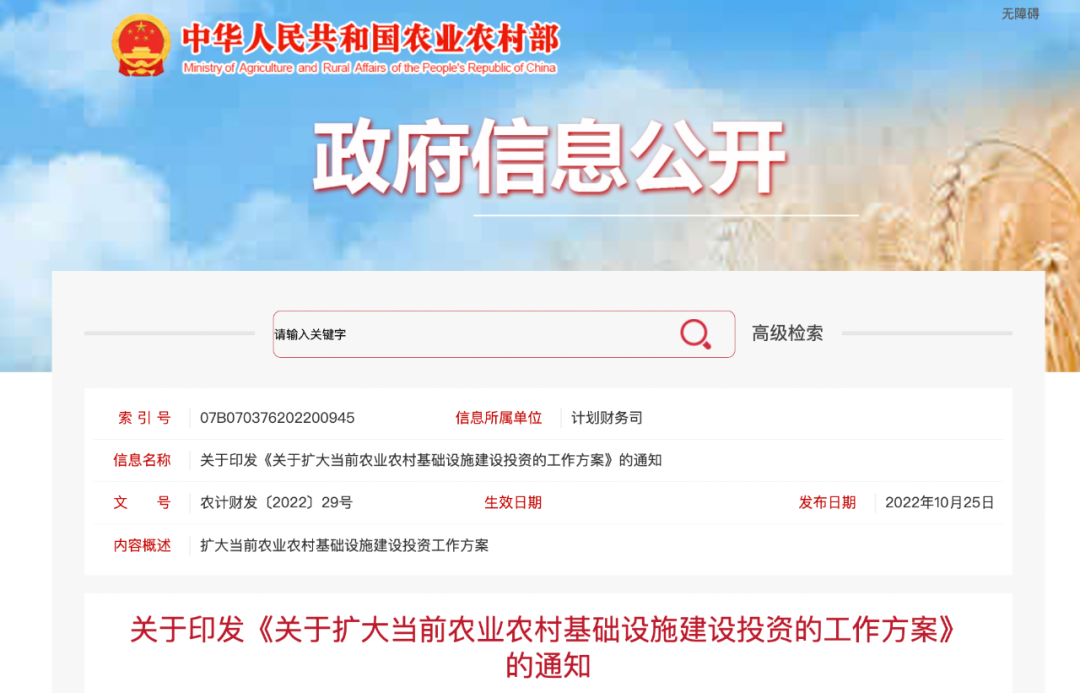 《关于扩大当前农业农村基础设施建设投资的工作方案》全文发布!