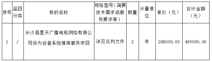 长沙县星天广播电视网络有限公司华为设备系统维保服务项目 竞争性谈判公告