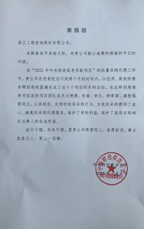 时间紧、任务重是本项目的重点和难点,自项目承接以来,鼎正招标采购服务团队,一直秉承“为项目提升价值,为客户实现价值”的企业使命,在受采购人委托不足两个月的时间里,完成了近十个项目的政府采购。由于政府采购过程中可能存在各种不确定因素,从而导致采购发生延期或者重新采购的情形(如:潜在供应商不足、有效供应商不足3家、质疑投诉等)。为了有效控制和规避采购风险,在项目策划阶段,项目组通过以往积累的经验以及受托项目的实际情况,对项目进行风险评估分析,及时研判出可能存在的风险,并制定出相应的防范措施,为项目顺利推进保驾护航。在项目实施阶段,项目组通过编制合理科学的采购文件、在法律允许的范围内温馨提示供应商相关投标注意事项、积极真诚地回复供应商的询问、严谨合理合法地处理供应商质疑,最终顺利完成采购人的委托,并收获了业主发来的表扬信。