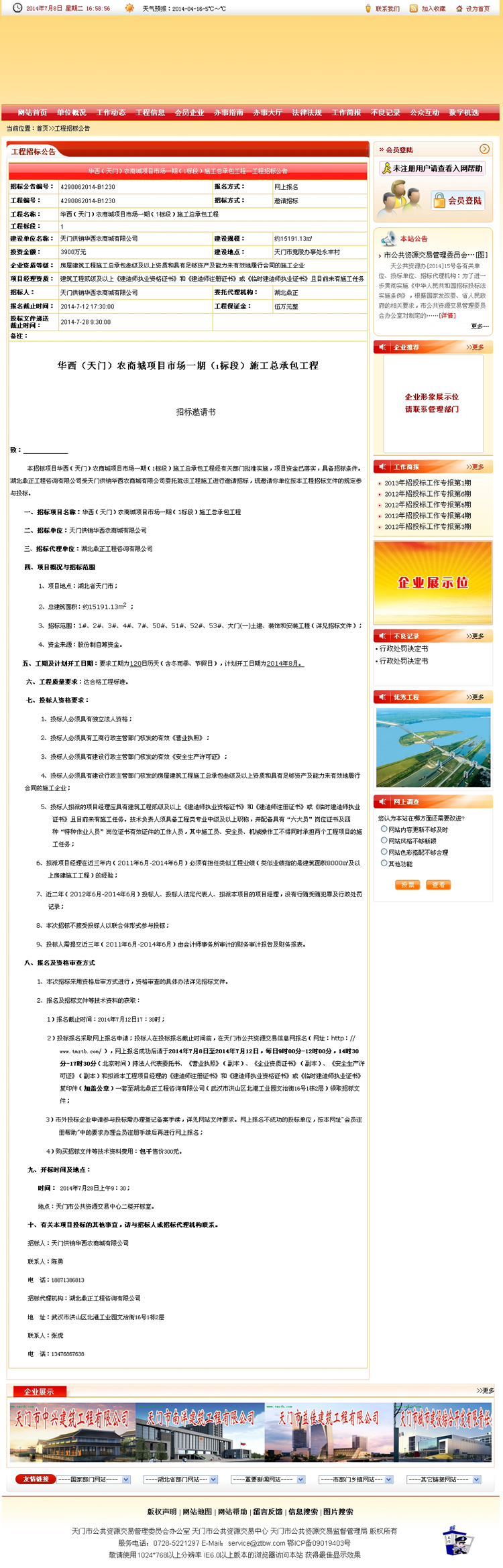 华西(天门)农商城项目市场一期(1标段)施工总承包工程