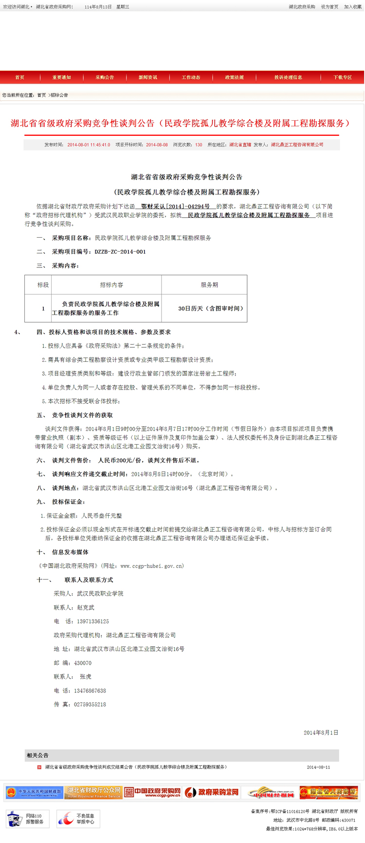 武汉民政职业学院孤儿教学综合楼项目设计招标