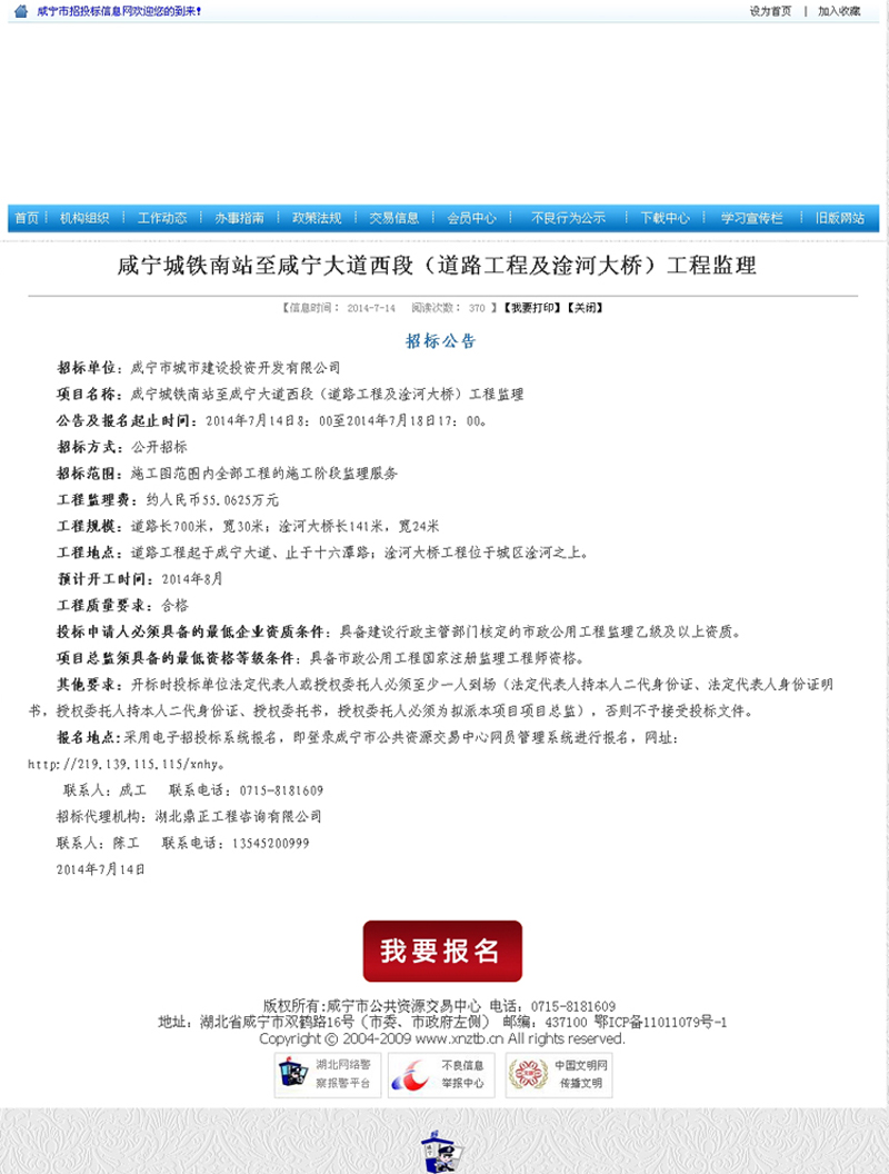 咸宁城铁南站至咸宁大道西段(道路工程及淦河大桥)工程监理