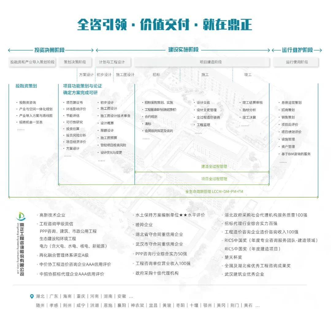 鼎正业务涵盖设计咨询产业链及工程产品产业链,既包括居住建筑、公共建筑、工业建筑等建筑设计领域,市政排水设计、市政道路设计等市政设计领域及景观绿化设计领域,也包括全过程工程咨询、全过程产业咨询、投融资咨询、项目管理、造价咨询、造价与法律纠纷咨询、招标代理等工程投资、造价、运营等业务。