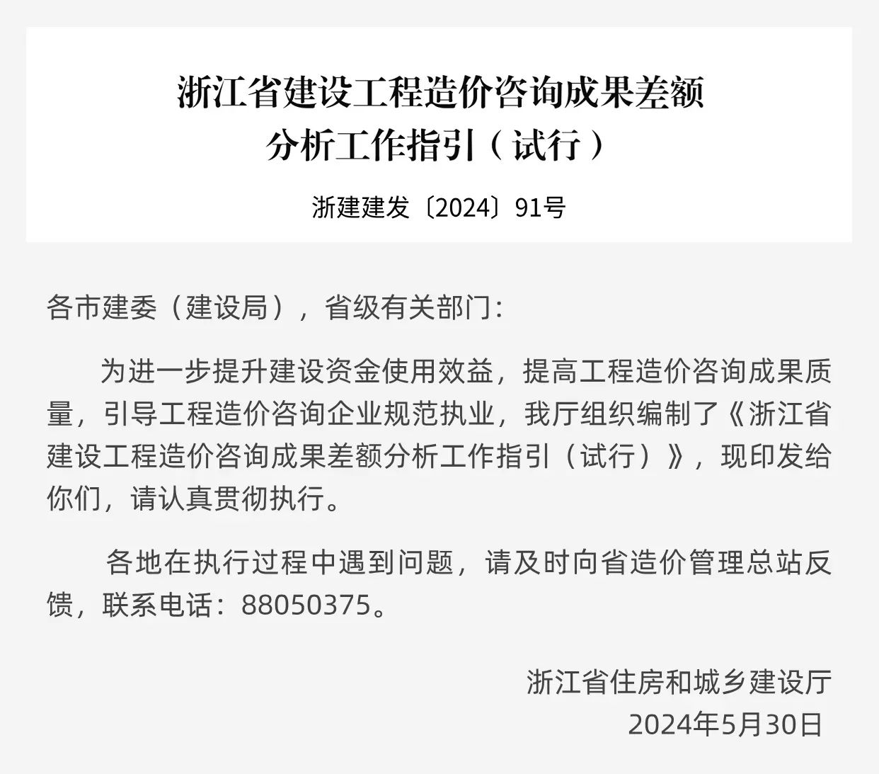 浙江省建设厅关于印发《浙江省建设工程造价咨询成果差额分析工作指引(试行)》的通知