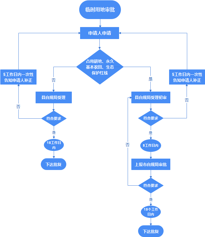 1、申请人向临时用地所在地的县(市、区)自然资源主管部门提出申请,由县(市、区)自然资源主管部门负责办理临时用地审批。