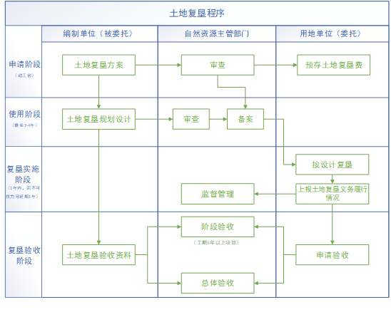 2、支取土地复垦费土地复垦义务人应当按照土地复垦方案确定的工作计划和土地复垦费用使用计划,向损毁土地所在地县级自然资源主管部门申请出具土地复垦费用支取通知书。县级自然资源主管部门应当在七日内出具土地复垦费用支取通知书。土地复垦义务人凭土地复垦费用支取通知书,从土地复垦费用专门账户中支取土地复垦费用,专项用于土地复垦。