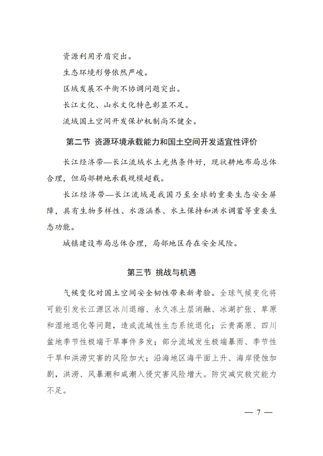 加快蓄滞洪区工程与安全建设,强化蓄滞洪区土地利用、产业引导、人口规模管控。开展洲滩民垸分类治理。充分考虑气候变化引发的极端天气影响和防洪形势变化,科学提高长江流域防洪工程标准。支持水库群等水工程联合调度,发挥防洪工程体系整体优势。