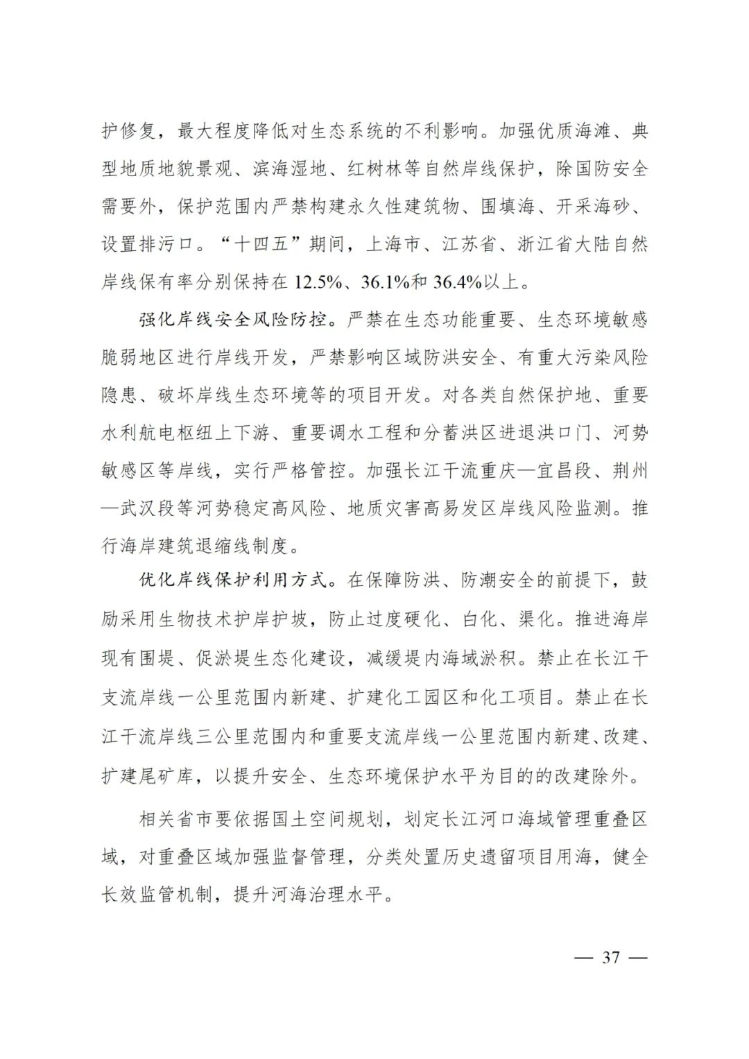 统筹过江通道布局,在严格保护长江干线沿线生态环境,统筹和合理避让生态保护红线、耕地和永久基本农田保护红线,以及航道保护范围、禁限航区、港口岸线前提下,支持长江沿线省市跨江、拥江协同发展。