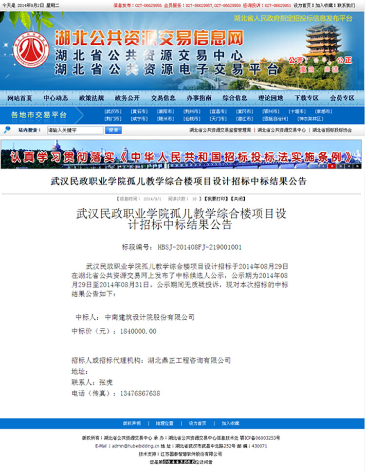 武汉民政职业学院孤儿教学综合楼项目设计招标