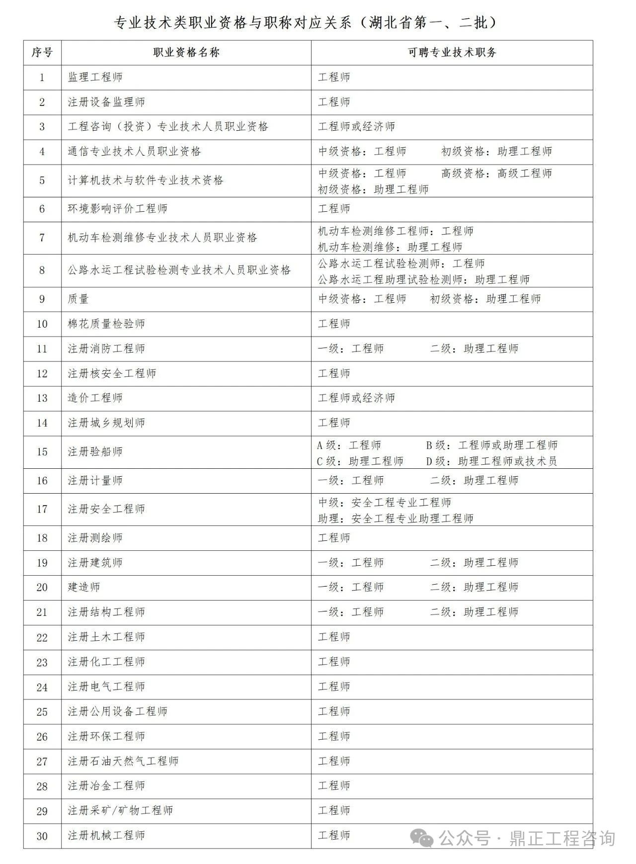 鄂职改办已下发《湖北省职称评审专业目录》(鄂职改办〔2021〕46号),其中工程系列已涵盖环保、水利水电、建筑、土地、测绘、规划等相关专业,详见下图: