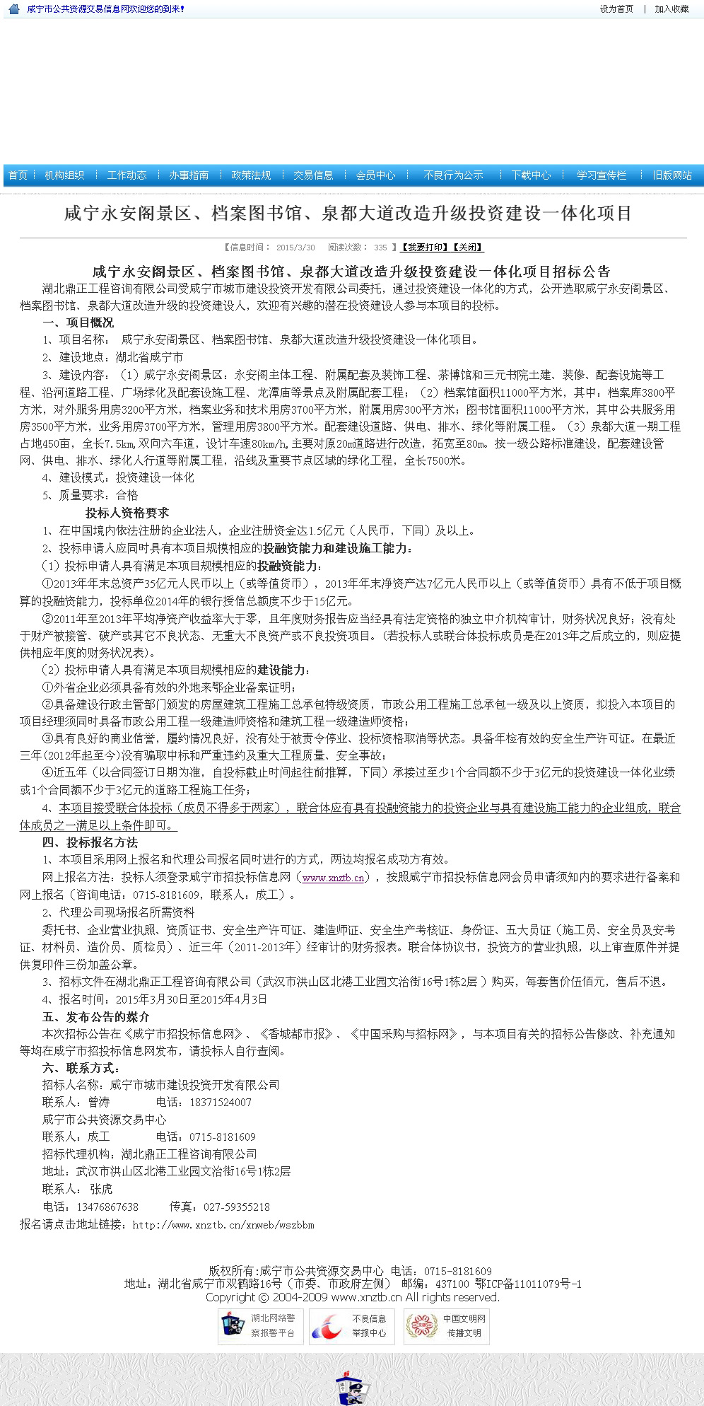 咸宁永安阁景区、档案图书馆、泉都大道改造升级投资建设一体化项目