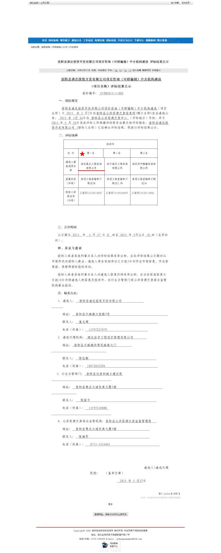 【经营成果】我司入围湖北咸宁经济开发区管理委员会2015年度建设工程招标代理及造价咨询中介服务机构库招标代理单位