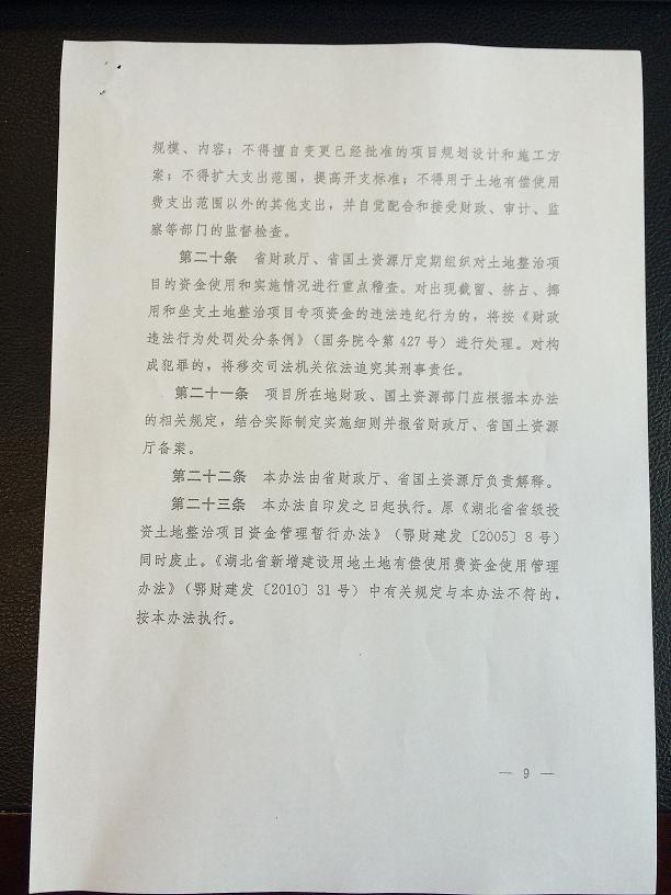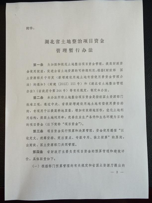 湖北省土地整治项目资金管理暂行办法