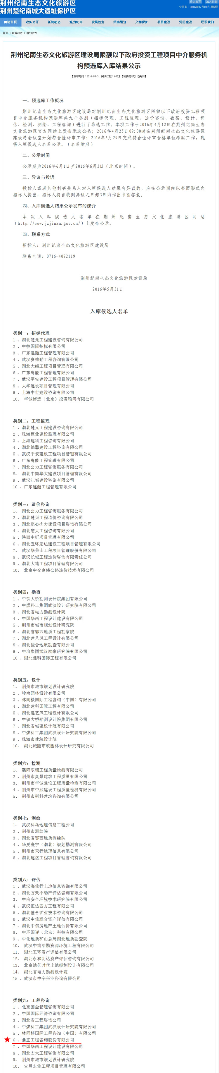 【经营成果】我司入围荆州纪南生态文化旅游区建设局限额以下政府投资工程项目中介服务机构预选库