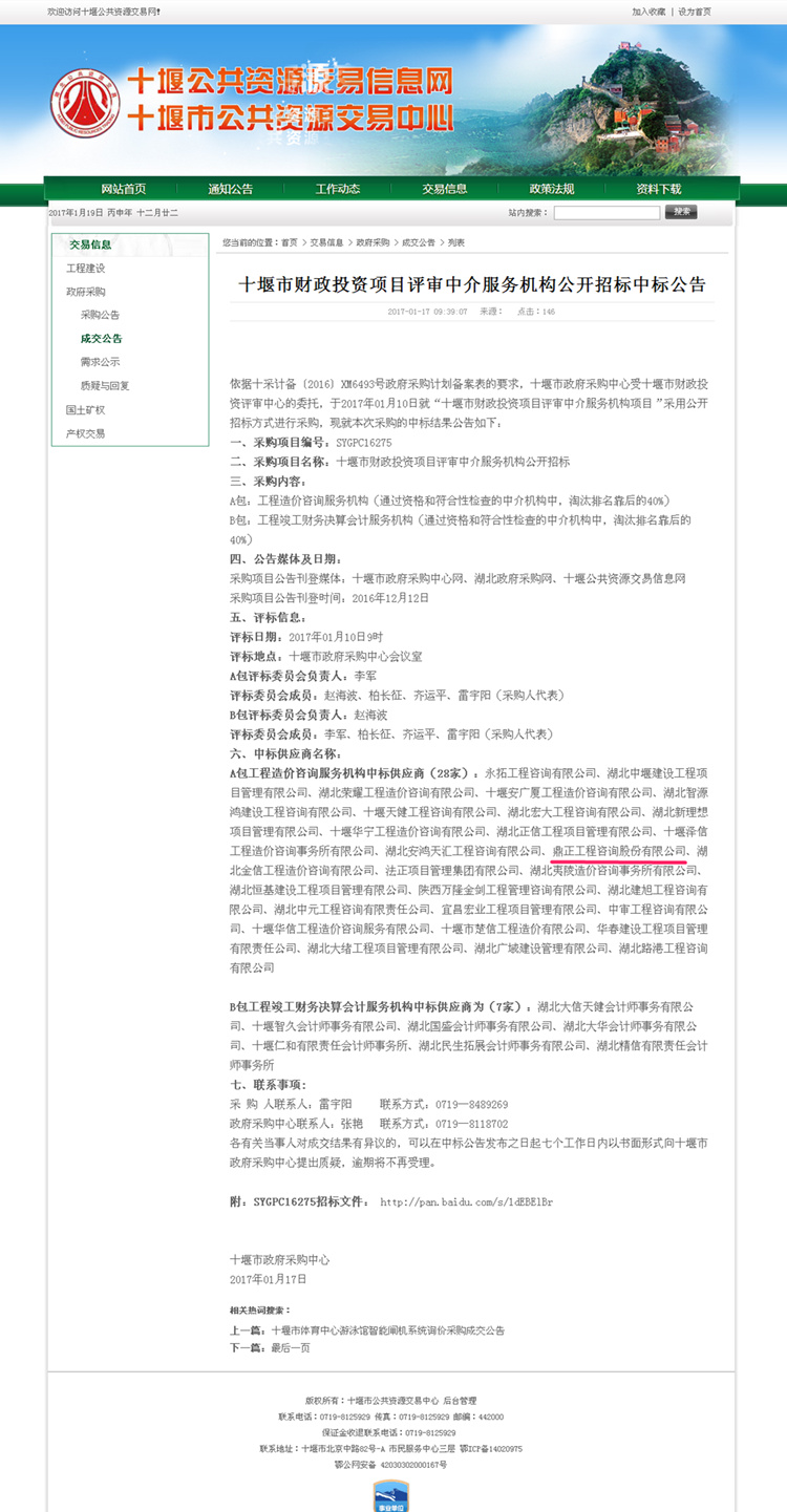【经营成果】我司入十堰市财政投资项目评审中介服务机构库